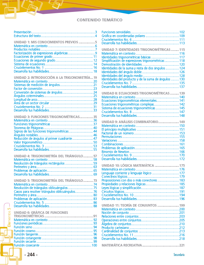 Ahora ponemos a tu alcance textos de Matemática para secundaria de 5to denominado (Elementos).